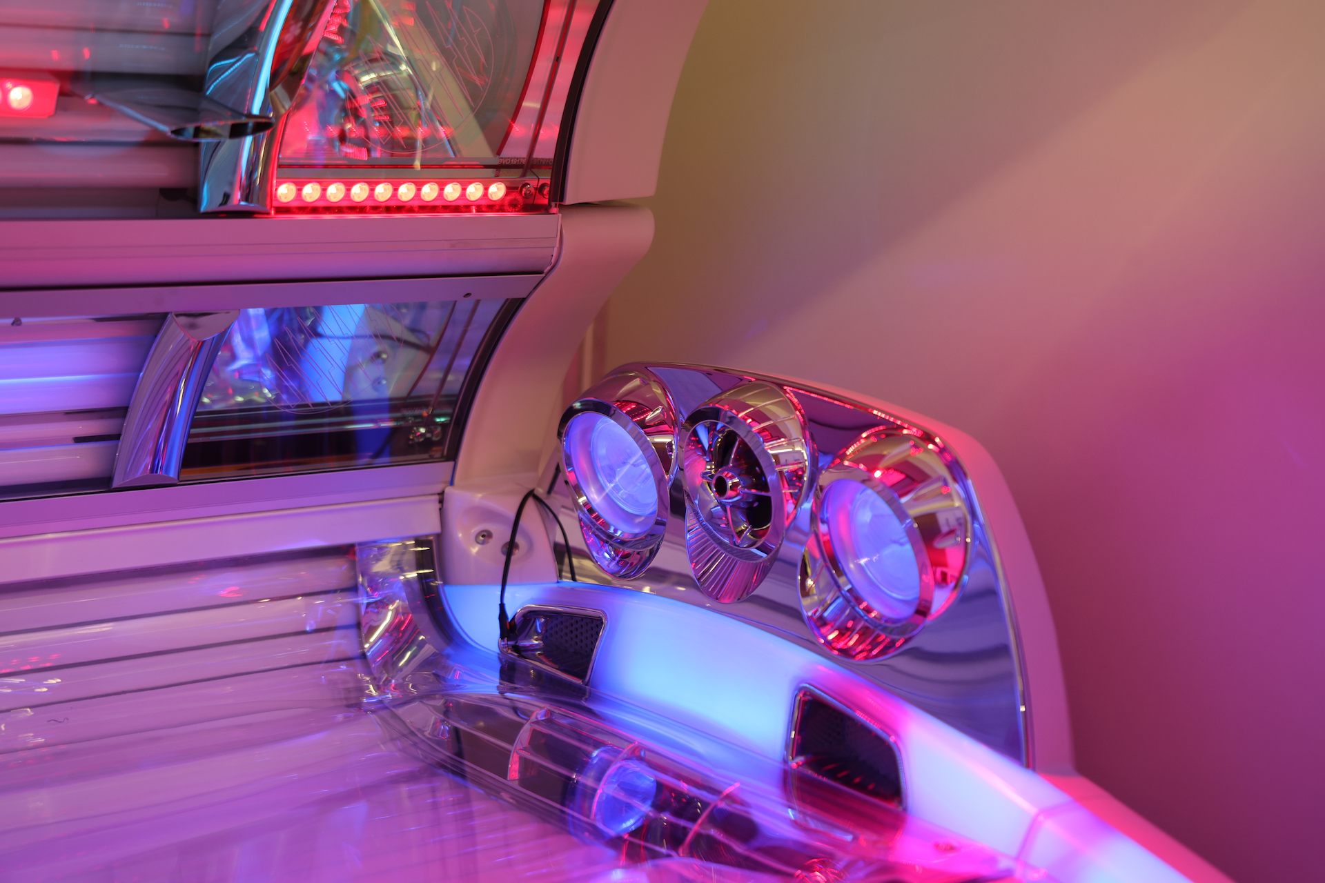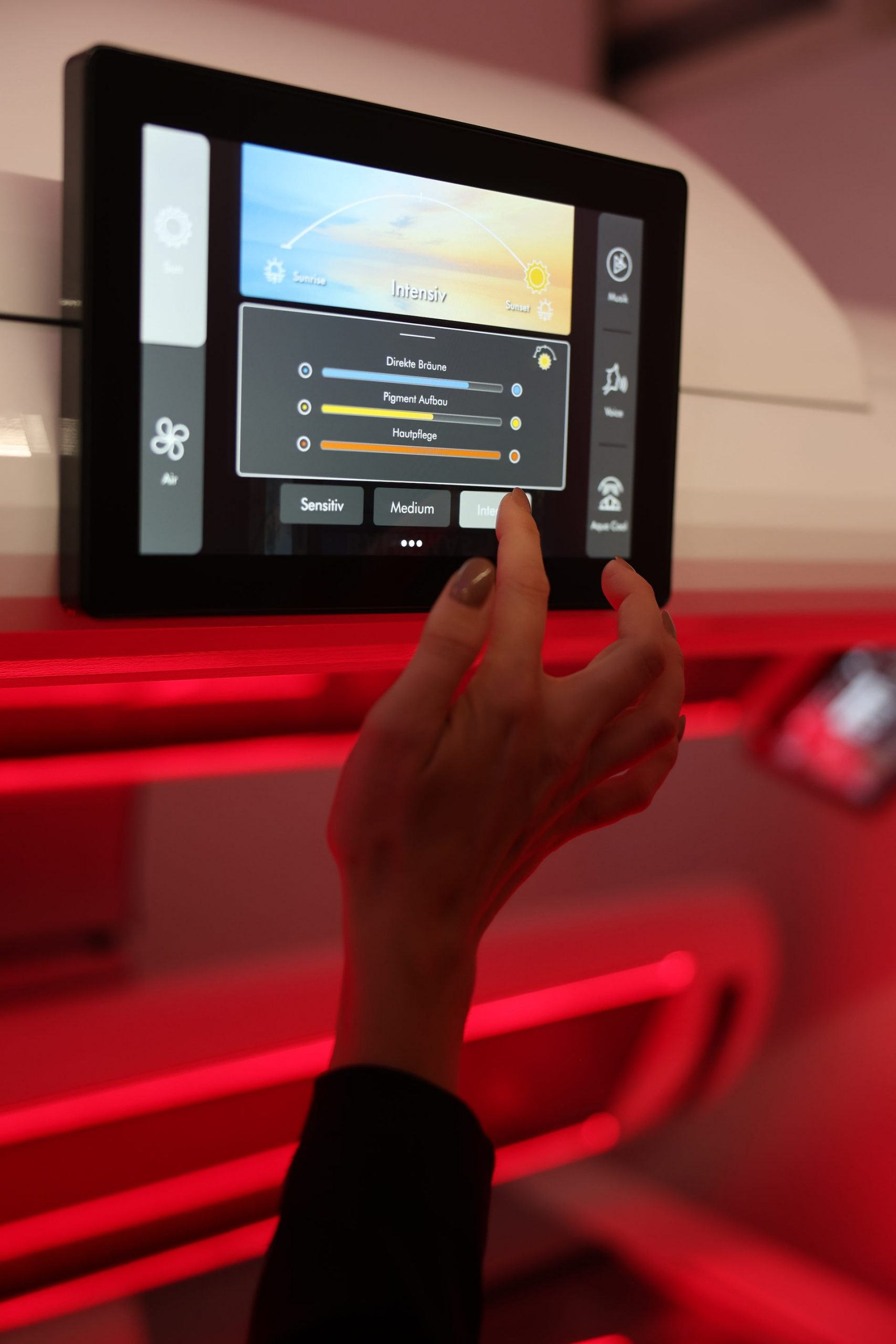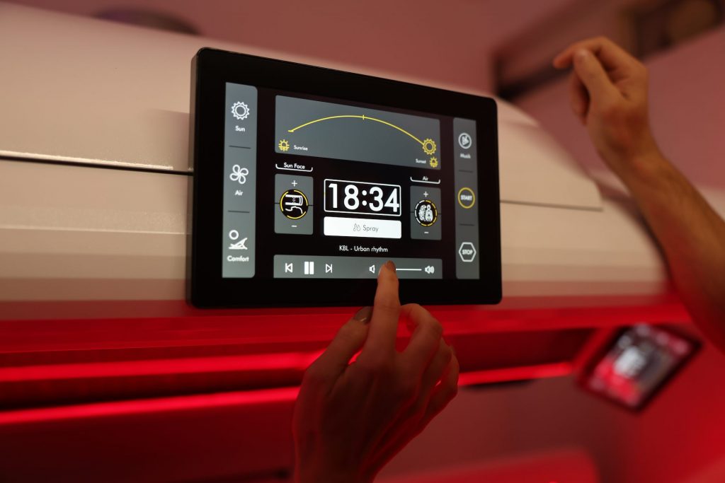 LED-Technologie statt herkömmlicher UV-Lampentechnik, bei der die Spektren UV-A, UV-B und Rotlicht individuell gesteuert werden können